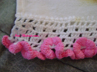 Achei que esse biquinho fica muito bonitinho. Uma amiga me emprestou a amostra e eu acho que copiei direitinho. É super fácil e delicado, agora só falta ver como ficará nos panos de prato. Aliáz já sei como ficará, porque já vi esse bico em alguns blogs de amigas e ficou lindo. Espero que vocês também gostem. Só as imagens que não estão tão boas, continuo sem máquina e tirei essas fotas atravéz da web cam.