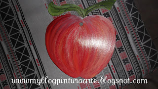 Olá queridos e queridas...Resolvi mostrar, pelo menos um dos cacarecos que estão indo para o lixo rsrsrsrsrs...Esse ainda não foi porque ainda vou ver se dá para salvar,quem sabe com uma decoupage ou se não lixotage mesmo rsrsrsrsrsrsrs.Eu nunca havia trabalhado com outra tinta ou técnica que não fosse tecido,ou trabalhos que usem tinta de tecido, como o emborrachado.Quando pensei em pintar essa maçã em MDF, imaginei que sairia uma daquelas maçãs lindas que pintamos em tecido e foi isso que tentei fazer affff rsrsrsrsrs...Eu tentei a mesma técnica que usei neste trabalho que fiz e passei o PAP nesta postagem...Queria que ficasse do mesmo jeito como no pano rsrsrsrsrsrs.Que desilusão, a danada da tinta usada aqui(Nature Colors Acrilex) seca muito rápido e como o material não é poroso, matizar é muito dificil, precisa de técnica(e eu não fiz curso para pintar em MDF).Para vocês terem uma base, essa maçã é pouco maior que um prato de sobremesa aí quando o pincel chega lá em baixo a tinta já está secando rsrsrsrsrsrs...Não estou falando mal da tinta porque esta mesma tinta usei nessa tela e foi mais fácil.Bom, acho melhor ninguém morder essa maçã, porque ela está "podre"...rsrsrsrsrs....