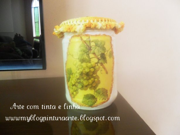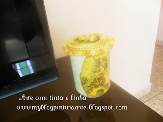 Sinceramente eu gostei muito, acho lindo essa arte......e a tampa de crochê deu um toque especial, eu nunca tinha visto.....