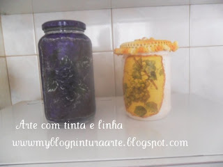 Gostei muito do potinho, acho que esse ficou mais trabalhado e consequentemente o resultado é mais vistoso. E fala sério a tampinho deu um charme a mais! Acho que o potinho roxo deve ter ficado roxo de raiva de você colocar os dois juntos pra tirar foto...srsrsrrs. Faz uma tampinha bem linda pra ele também!